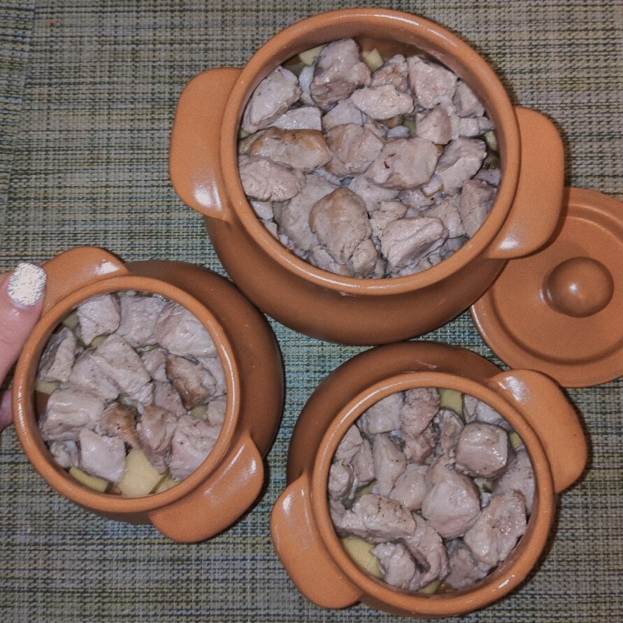 Горшочки с картошкой и свининой в духовке