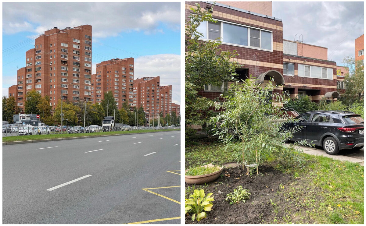 Увлекательнейшая тема малоэтажного жилья 1980-х, которое скрыто от посторонних глаз. Настроение в то время было таким, что в идеальных условиях людям нужно разное жилье. Общая черта этих идей — на магистрали выходят высотные дома, которые являются доминантами. А во дворах можно построить и что-то малоэтажное, уютное, ещё и защищённое от шума проспектов (например, это было реализовано в 12-м ЭЖК). Конечно, в тот момент условия были неидеальными, на первом плане все же стояло решение жилищных проблем, поэтому массово мы видим типовые дома. А более компактные проекты единичны, построены уже позже или и вовсе остались на бумаге. Четыре 16-этажных кирпичных дома на Коломяжском пр. возводились с 1983 по 1989 года по проекту группы архитекторов во главе с Владимиром Николаевичем Щербиным. Эти дома соединены с «танхаусами», которые чуть задвинуты во двор и не особо бросаются в глаза. А кто-то мне писал, что просто и не думал, что там могут быть жилые квартиры. Впрочем, жилые квартиры т