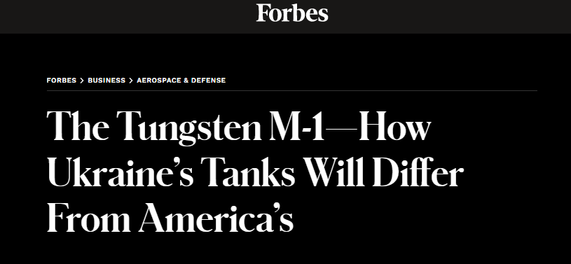 Продолжаю мониторить американскую прессу на предмет дополнительной информации в отношении обещанных уркам 31 Абрамса. Ранее я уже публиковал эксклюзивный материал американского издания Politico, в котором говорилось о том, почему эти 31 машина еще очень нескоро попадет в Восточную Европу. Сегодня я покажу вам, уважаемые читатели, не менее познавательный материал другого известного американского издания Forbes. И здесь уже речь идет о том, что американцы будут заменять броню из обедненного урана на вольфрам. Вольфрамовые М-1: чем украинские танки будут отличаться от американских Есть веская причина, по которой Украине могут потребоваться месяцы — а может и год — для того, чтобы получить эти первые 31 танк M1A2 Abrams из Соединенных Штатов.