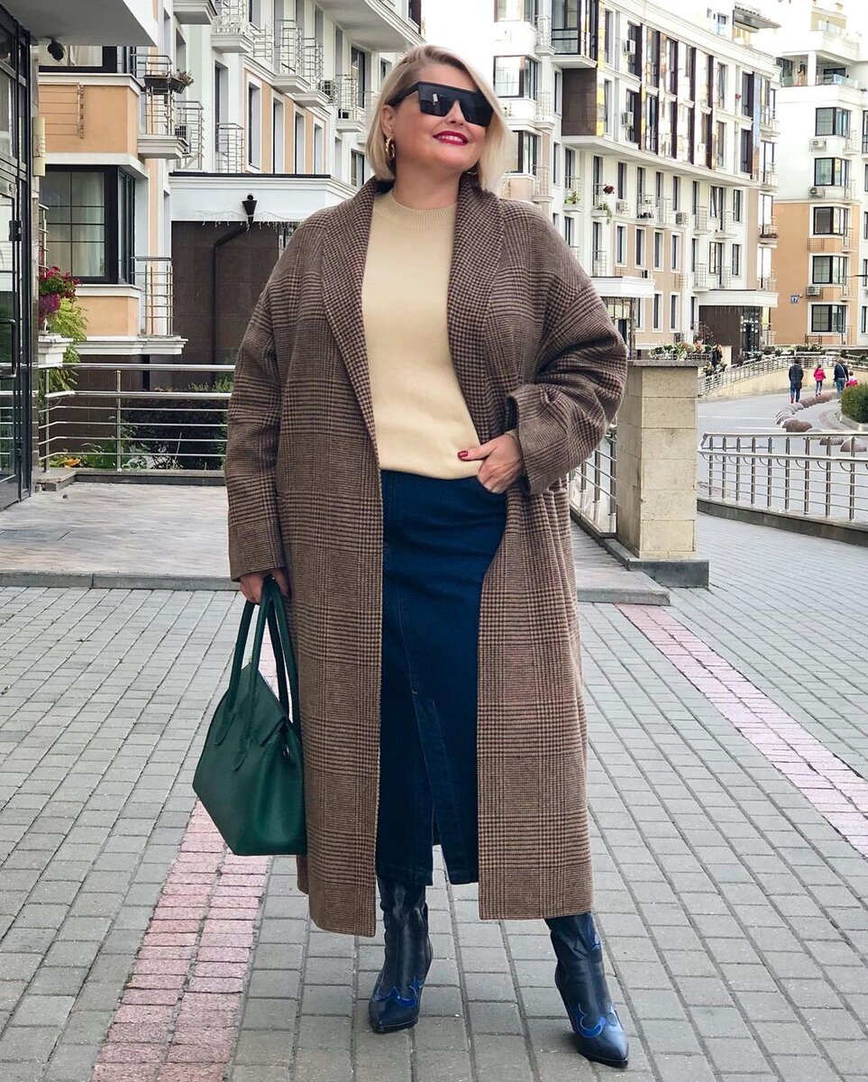 Современных обладательниц рубенсовских форм нельзя упрекнуть в отсутствии стиля. Ведь полнота – это не повод комплексовать, облачаться в бесформенные серо-мышиные наряды. Давайте сегодня рассмотрим 10 безупречных образов от российской модницы Ольги Ипатовой. Блогер отдает предпочтение комплектам кэжуального направления. Клетчатое пальто + джемпер + юбка миди из денима – стиль и комфорт в одном флаконе. Ольга удачно завершила образ высокими сапогами, зеленой сумкой. Куртка с вертикальной стежкой идеально подходит женщинам с пышными формами. Модель зрительно "вытягивает" фигуру, добавляет роста. Куртка отлично ладит с джемпером, футболкой, брюками, цветными ботинками и кепкой. Плюшевая бейсболка – тренд зимнего сезона. Она стильно смотрится в тандеме с полосатым джемпером, кремовыми брюками, ботинками и синим пуховиком. Если погода позволяет, то объемный пуховик можно заменить стеганым пальто. Ансамбль в спокойных бежевых тонах Ольга удачно освежила акцентным шарфом, который создал ст
