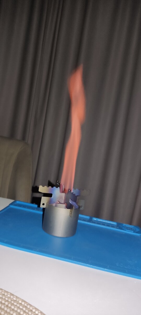 Я уже рассказывал про кухню эгоиста и область её применения. Я совершенно доволен тем набором, у меня к нему нет никаких претензий. И сейчас, если бы у меня его не было, то я не раздумывая купил бы всё, из чего он состоит. Но голова- беспокойное место и всегда хочется какого-то нового опыта...экспериментов. В очередном порыве меня увлекла тема спиртовок. Самое простое и бесплатное, что можно сделать- пустить в расход несколько алюминиевых банок из под пива или газировки. Я поигрался с этим и сделал несколько опытных образцов. Вкратце- тема рабочая. Но мне хотелось посмотреть на заводские решения. Была заказана титановая горелка из Китая. Уже при первом розжиге я понял, что по мощности она на голову выше моих самоделок. Горит аки аццкая сатана. Заслуга, по всей видимости, двойных стенок, где происходит перегрев спирта и образование мощной газообразной фракции, которая усиливает горение над основной чашей. В самоделках я также реализовывал такую схему, но по эффективности с покупной, мо
