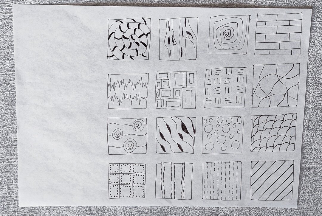 Опять паттерны в квадратах, на этот раз на кальке.Вспомнила что у меня есть блокнот с кучей зарисовок паттернов. Порисовала часть оттуда.