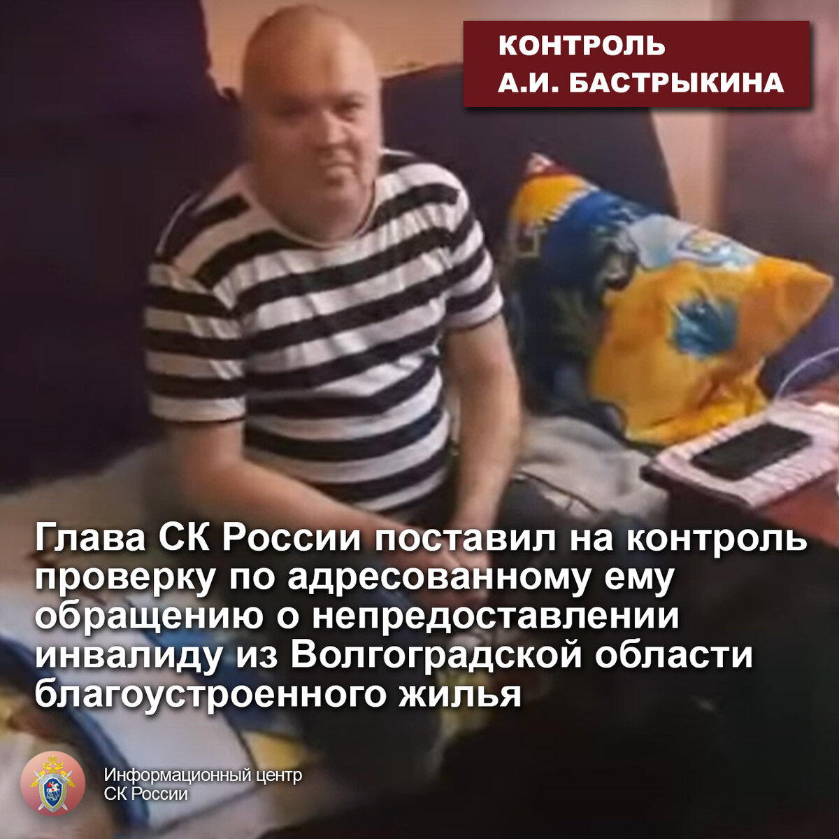 Глава СК России поставил на контроль проверку по адресованному ему обращению о непредоставлении инвалиду из Волгоградской области благоустроенного жилья