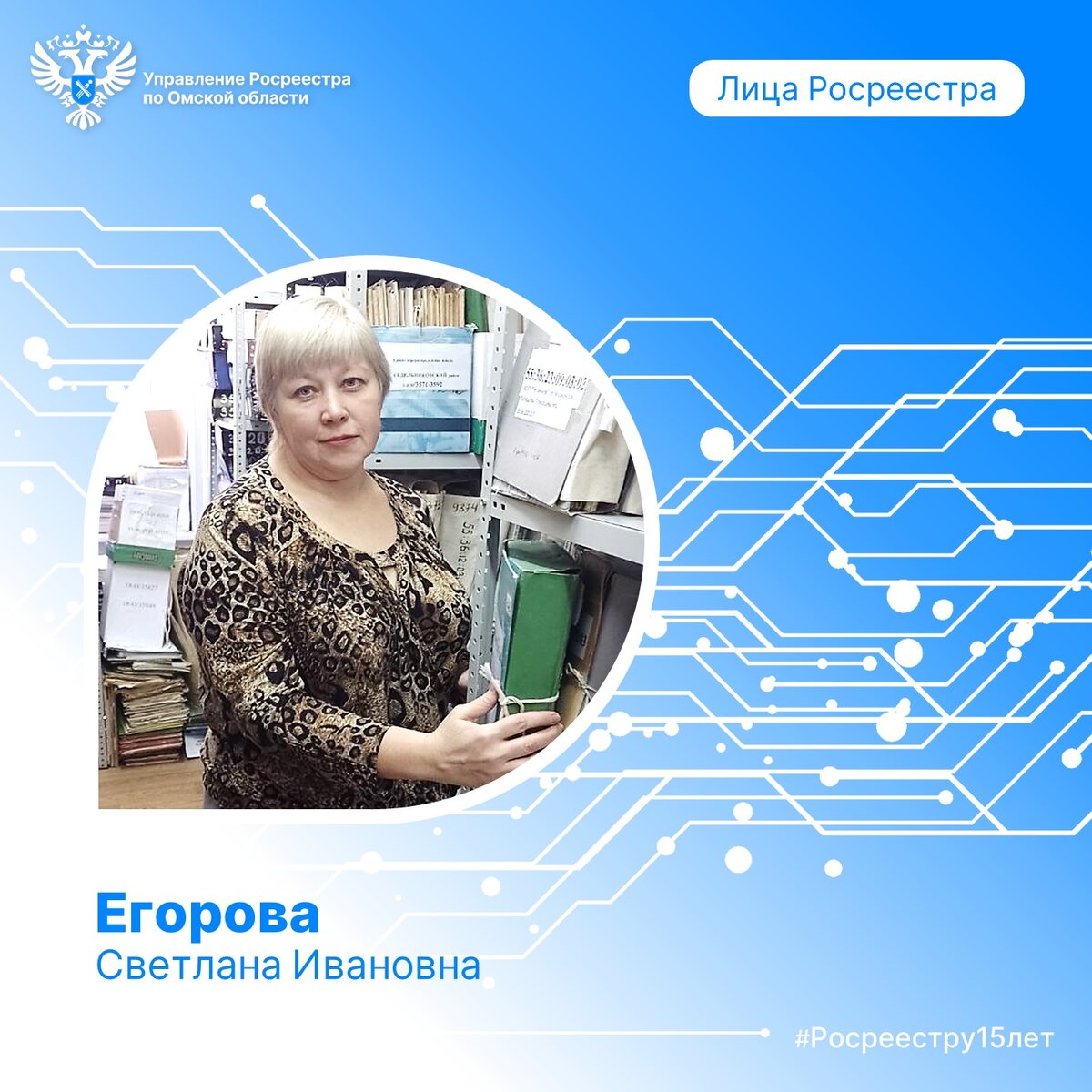 В январе, посвященном хранителям архивов ведомства, продолжаем пополнять фотогалерею рубрики «Лица Росреестра». Знакомьтесь: еще один заслуженный работник архива омского Росреестра – Егорова Светлана Ивановна, главный специалист-эксперт отдела землеустройства, мониторинга земель и кадастровой оценки Управления. И в ее руках настоящие ценности – весь государственный фонд данных, полученных в результате проведения землеустройства (ГФДЗ) на территории Омской области с 1936 года, а это более 160 000 дел. Именно Светлана Ивановна стояла у его истоков, которые зарождались не где-нибудь, а в недрах архивов ВИСХАГИ (Всесоюзного института сельскохозяйственных и аэрофотогеодезических изысканий), которые впоследствии были переданы в ГФДЗ и составили его основу наряду с объединенным архивом Роснедвижимости. Светлана Ивановна могла бы стать потомственным землеустроителем и пополнить в этой профессии династический стаж (двоюродных братьев и сестер, братьев и сестер своих родителей), который и так уж