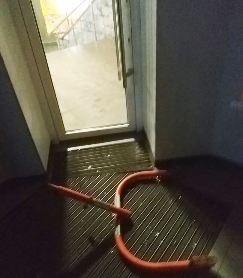 Нетрезвый гражданин оторвал металлический парковочный барьер на расположенной рядом автостоянке, а затем данным предметом разбил входную дверь и проник в помещение.