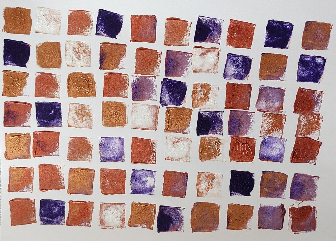 Просто квадратики акриловой краской с помощью косметического спонжа.Получилась интересная текстура от акрила. Очень понравилось.