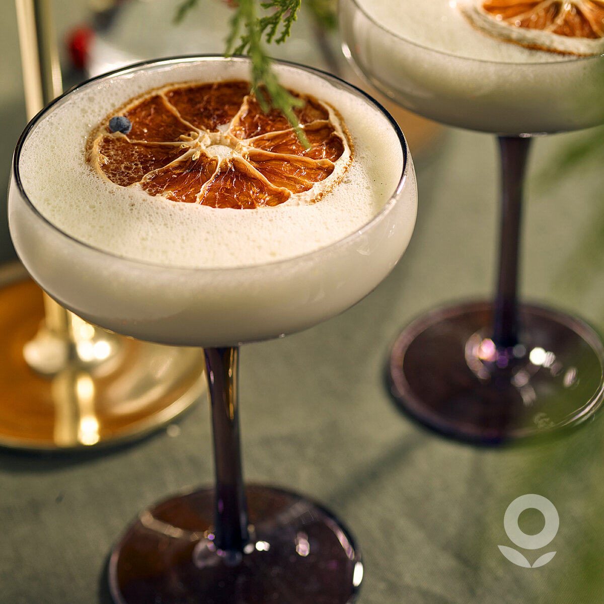 3. Разлейте эгг-ног по бокалам, украсьте каждую порцию кружочком сушёного апельсина и подавайте.