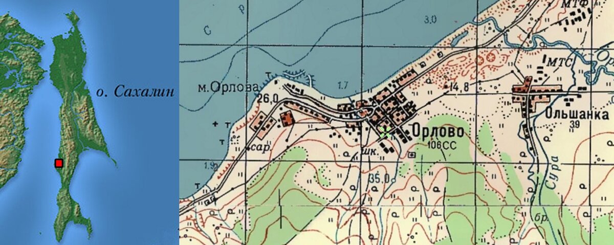 Село Орлово расположено на западном побережье острова, примерно в 30-ти километрах южнее районного центра - города Углегорска. С точки зрения природных условий место замечательное для жизни и весьма живописное. А что касается его истории - обратимся к источникам.