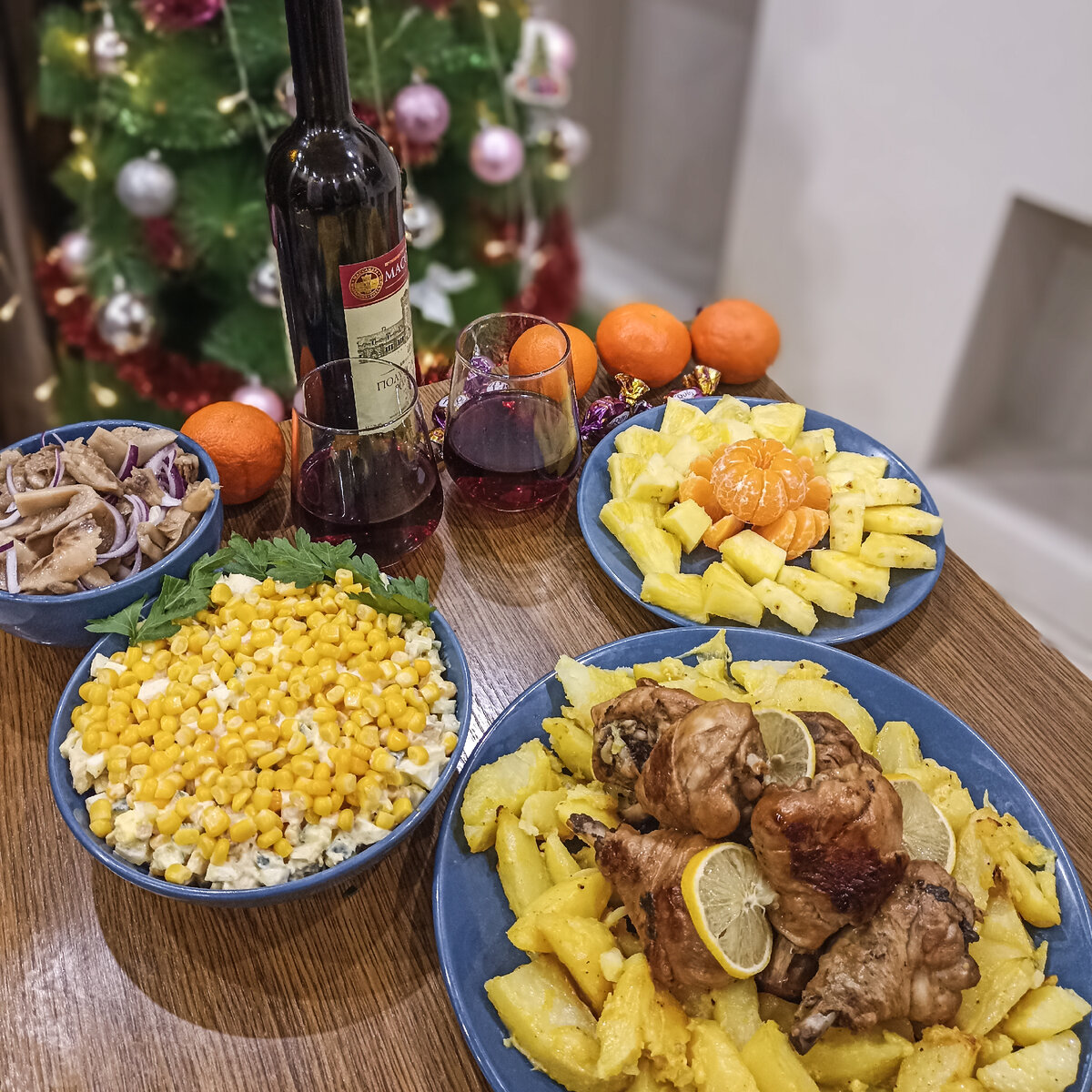 Ужин по праздничному, лимонная курочка и салатик "Кукурузка"