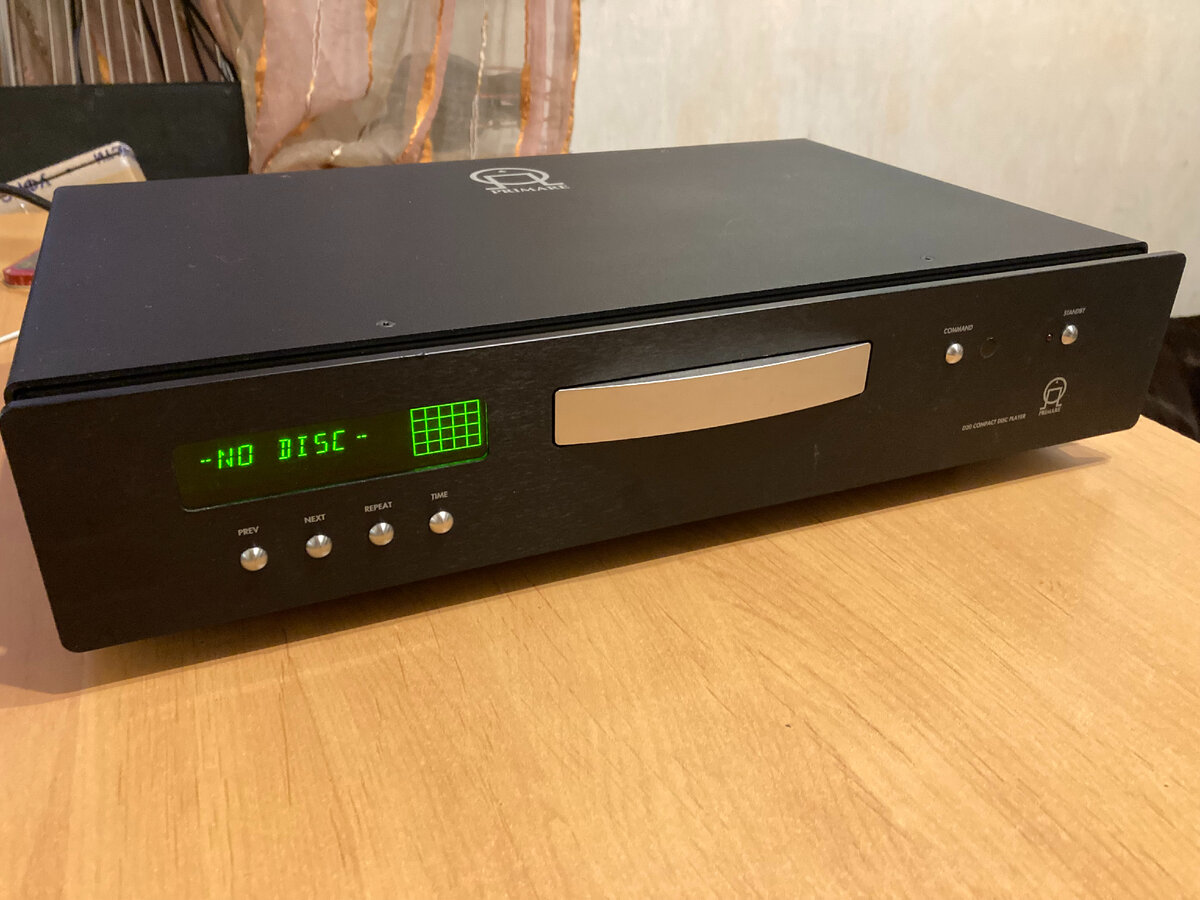 Primare D20 - CD плеер конца 90-х годов, стоимостью 1250$ на начало выпуска. Он воспроизводит только CD, но встроенный мультибитовый ЦАП AKM AK4393 имеет разрешение 24 бит\96 кГц. Оригинальный дизайн, напоминающий слегка выдвинутый ящик, имеют и другие аппараты 20-й и 30-й серии. Корпус небольшой, но тяжелый и очень прочный. Внутри все достаточно просто: блок питания, трансформатор которого имеет несколько отдельных вторичных обмоток для питания цифровой части и еще несколько вторичек для питания аналоговых цепей.