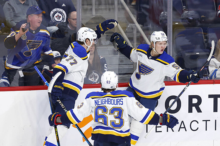 Поедет в фарм на время паузы. В этом году в «Сент-Луисе» собралась своя русская пятерка (а ведь еще есть защитник Дмитрий Саморуков в АХЛ), но вряд ли ее игроки выйдут когда-нибудь на лед одновременно – здесь только форварды. Владимир Тарасенко, Павел Бучневич, Иван Барбашев уже давно заявили о себе в лиге, Алексей Торопченко неплохо проявил себя в прошлом сезоне, а в нынешней регулярке «Блюз» помогают продвинуться Никите Александрову. Единственный русский гол дня в НХЛ – у Александрова Перед уходом на длинную паузу – игр у «Блюз» и еще нескольких клубов не будет аж до 11 февраля – «Сент-Луис» приехал в Виннипег. Это был единственный матч дня, и первые два периода получились не самыми веселыми – при сумасшедшем количестве моментов у «Джетс» забили именно гости. Самый огонь пошел в начале третьего, и здесь круто проявил себя как раз Александров. Вряд ли кто-то ждал многого от форварда, которому в сумме дали 9 минут на льду, но именно он забросил вторую шайбу в матче. «Ливо хороший пас о