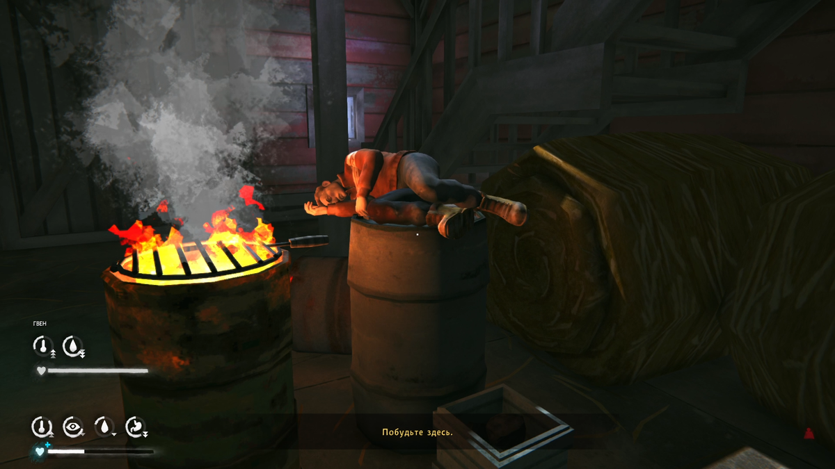 Полное прохождение The Long Dark от нашего канала FamilySmol_Play, оставайтесь с нами. Астрид согревает Гвен возле костра. Но нужно идти дальше сквозь порывы холодного ветра The Long Dark. Опасно тащить Гвен по льду среди скал. Густая березовая роща скрывает разрушенные дома. Из-за сугроба движется глыба вздыбленной шерсти, разносится рев, полный ярости. Астрид скидывает Гвен на снег, чтобы попытаться защитить себя и ее. Медведь бросается в атаку. Жалкие попытки отбиться почти бессмысленны. Зверь сильно потрепал. Собравшись с силами и взвалив на себя Гвен, Астрид идет к заброшенным строяниям. Рыки, лязганье зубами. Волки атакуют. Нужно уносить отсюда ноги, с этой стаей сейчас не справиться. В амбаре теплее. Поесть, отдохнуть, поискать какие-нибудь вещи. И это уже интереснее. Лук. Древко стрелы, наконечник. На верстаке Астрид собирает еще одну простую стрелу. Теперь стоит поучиться пускать стрелы. На улице Астрид заглядывает в каждый трактор среди разбросанного сена. Забирает мясо с вол
