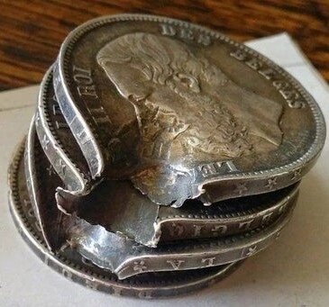 «История произошла в начале Первой мировой войны,» — рассказывает Винсент. «Мой прадед был призван рядовым в бельгийскую армию. В сентябре 1914 года его отряд участвовал в разведывательной операции около поселка Леббеке в Восточной Фландрии.» По словам Винсента, перед выходом на задание прадед положил деньги в нагрудный карман куртки, чтобы не потерять. По иронии судьбы, именно звон бьющихся друг о друга монет привлек внимание находившегося рядом противника. Немецкий солдат выстрелил в грудь Оптатусу и попал в монеты, лежавшие в кармане. «Пуля отрикошетила в сторону, оставив на серебре глубокий след,» — продолжает рассказ Винсент. «В тот же момент прадед упал на землю от сильного удара в голову — немецкий солдат решил добить его прикладом винтовки.» Оптатус лежал без движения и немец ушел, думая, что убил его. «После случившегося прадед вместе с раненым товарищем смогли добраться до безопасного укрытия», — объясняет Винсент. Почти год Оптатус числился в списках без вести пропавших
