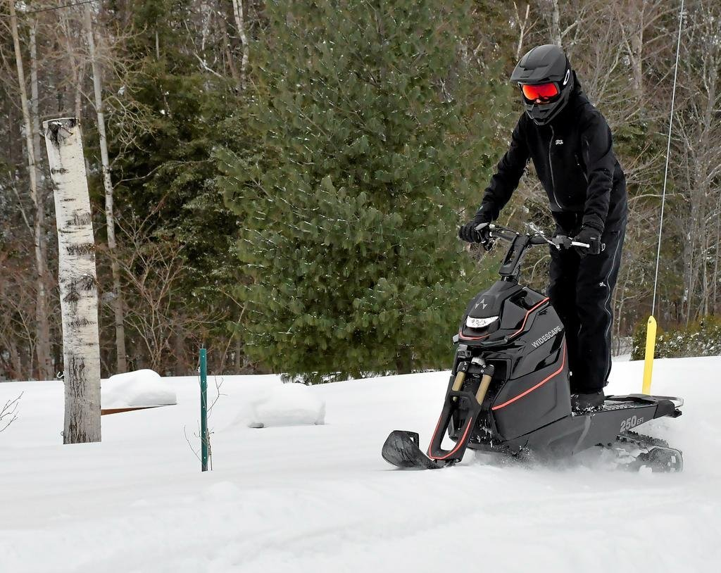 Этот уникальный и новый снегоход разработка канадских инженеров. Данный снегоход получил название Widescape WS250. Это единственный стоячий снегоход в мире. Пока на Российском рынке его нет, но в Канаде и США он доступен к покупке. Цена у снегохода конечно не маленькая, так в Канаде его можно приобрести за 8499 канадских долларов, а в США его цена составляет около 6750 долларов США. Интересно, а выйдет ли данный снегоход на российский рынок и будет ли он популярен? Конечно ответ на этот вопрос даст только время. Как говорится, поживем - увидим. Уникальность данного снегохода заключается в отсутствии сиденья. Снегоход одноколейный с одной лыжей и гусеницей. При этом снегоход имеет прекрасную проходимость, с легкостью маневрирует между ветками деревьев и кустами. Снегоход не только единственный стоячий, но и признан самым легким в мире, его вес составляет всего 90 килограмм. Двигатель четырехтактный объемом 242 куб. см. и мощностью 20 лошадиных сил. Топливный бак объемом 8 литров. Вариат