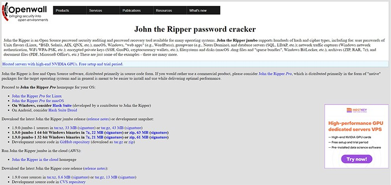 John the Ripper — это хороший выбор инструмента для взлома паролей, в основном из-за его природы с открытым исходным кодом и поддержки различных платформ. Открытый исходный код означает, что код доступен общественности, поэтому пользователям не нужно беспокоиться о легальности программного обеспечения и о потенциальных вредоносных программах, которые могут быть глубоко интегрированы в программное обеспечение.