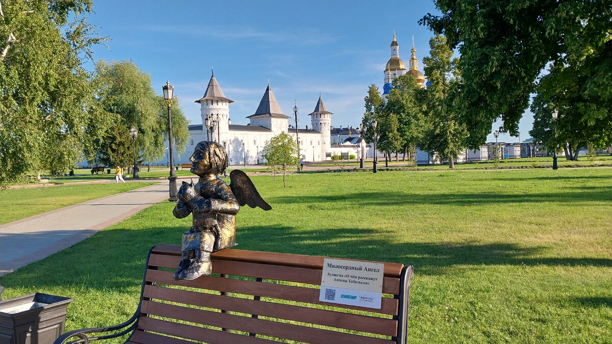 А в Тобольске можно присесть на скамейку рядом с ангелом, послушать его рассказ об истории города и задуматься о чём-то своём, важном и хорошем.
