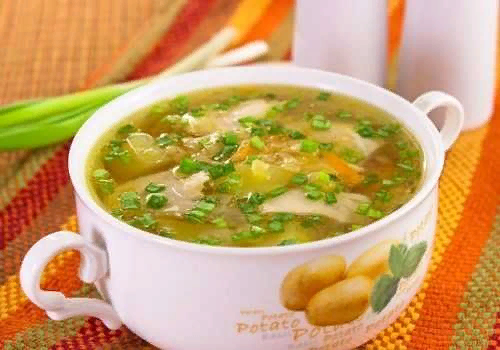 Отваренную курицу (200 г) измельчите блендером или на мясорубке, добавьте в готовый суп.