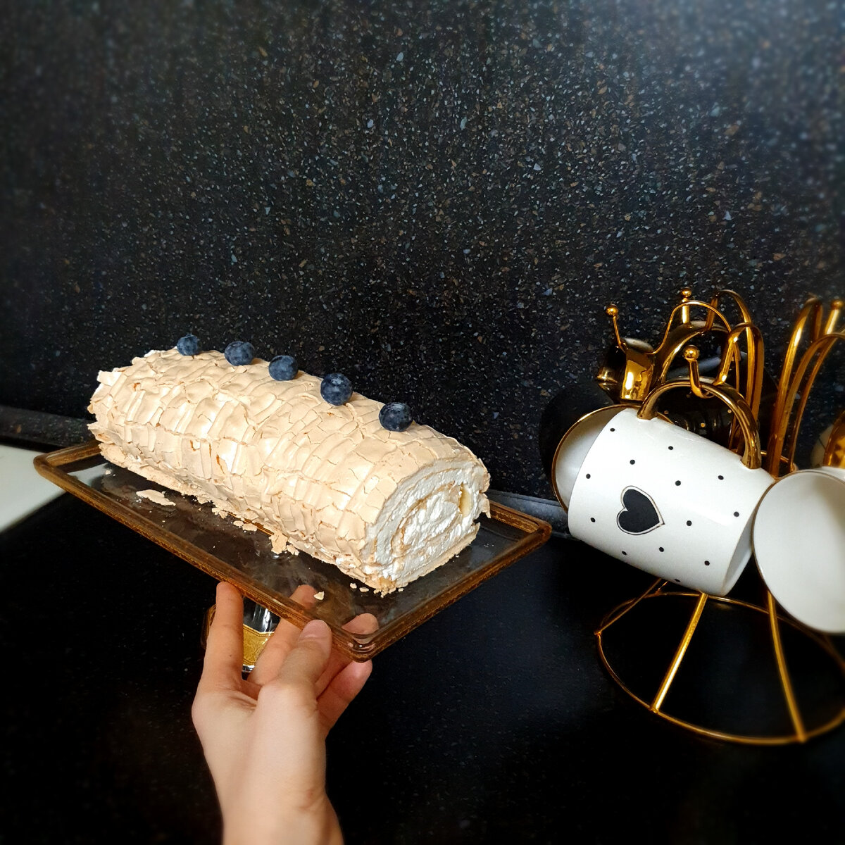 Очень вкусный, нежный и легкий рулет. Порадуйте свою семью необычным, легким вкусом. Ингредиенты: Белки 250 гр. Сахар 310гр. Кукурузный крахмал 25гр. Белки отделите от желтков. Белки с сахаром взбить на минимальных скоростях и ближе к концу добавить самую высокую мощность миксера. Если у вас ручной миксер сахар добавляйте постепенно. Консистенция должна быть блестящая и гладкая. Взбивать до устойчивых пиков. Следите за тем что бы не перевзбить белки, что бы не получились крупинки. Не стоит сразу взбивать на высокой мощности, сахар не растворится полностью и в итоге рулет будет липковатым. Ближе к концу добавьте кукурузный крахмал. Заменять картофельным нельзя. В кондитерке мы используем только кукурузный крахмал. Немного перемешайте и выключите миксер. Получится у вас меренга или нет зависит от того правильно вы взбили или нет и от температуры духовки. У всех духовка разная, поэтому можете использовать термометр для духовки что бы определить температуру именно вашей духовки. Постелите