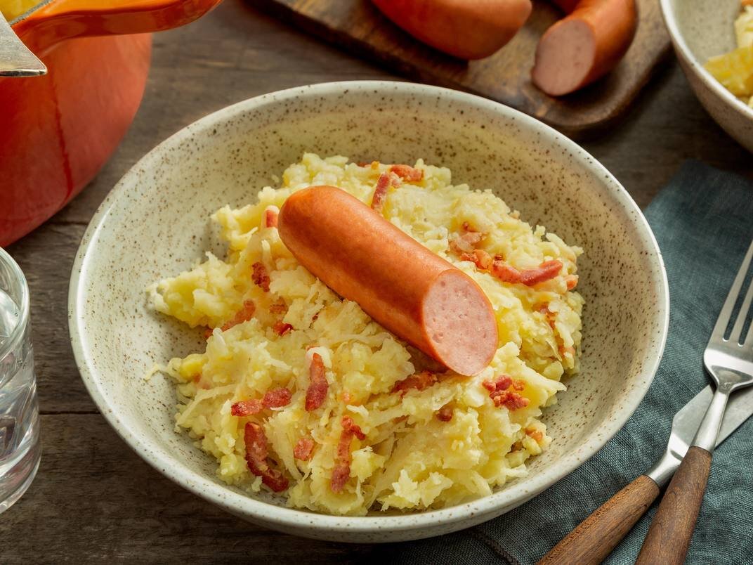 Одно из самых популярных блюд в Нидерландах называется стамппот. Блюдо олицетворяет собой нидерландский менталитет: недорогие ингредиенты, минимум времени на приготовление, максимум энергетической ценности. В основе этого блюда картофельное пюре, в которое добавляют различные ингредиенты и получается как бы самостоятельное блюдо. Зачастую в стамппот добавляют, завалявшиеся в холодильнике корнеплоды: морковку, брокколи, репу, сельдерей, некоторые добавляют шпинат, а особо утонченные гурманы- смесь фруктов с добавлением сыра и орехов. Для приданию пюрешке сытности, блюдо подается с копченой колбаской. Я редко, но готовлю стамппот с квашеной капустой. Для этого я покупаю килограмм картохи, которой использую только половину, так как нас всего двое. Я, честно говоря, не знаю квасят ли в Нидерландах капусту, подозреваю, что нет. Но это не беда- в супермаркете продается квашеная капуста. Для меня так и осталось загадкой в чем разница между простецким продуктом и био. Кроме разницы в цене я