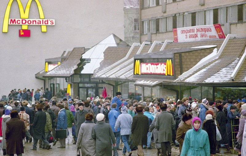 31 января 1990 года в Москве на Пушкинской площади открылся первый в Советском Союзе Макдоналдс. Рассчитанный на 700 посадочных мест, он в тот момент стал самым большим в мире. Но в "Книгу рекордов Гиннесса" он попал и по другой причине: в первый же день с утра в него выстроилась многотысячная очередь! Она кольцом опоясывала Пушкинскую площадь. Точная длина этой очереди была измерена для книги Гиннесса спустя две недели, 14 февраля: в этот день в ней стояло 1500 человек, растянувшихся на 275 метров! Нужно было потратить около 1 часа 45 минут, чтобы добраться до кассы. А за первый день заведение посетило до 30 тысяч человек! Рекордная очередь в Мак опоясывала кольцом всю площадь