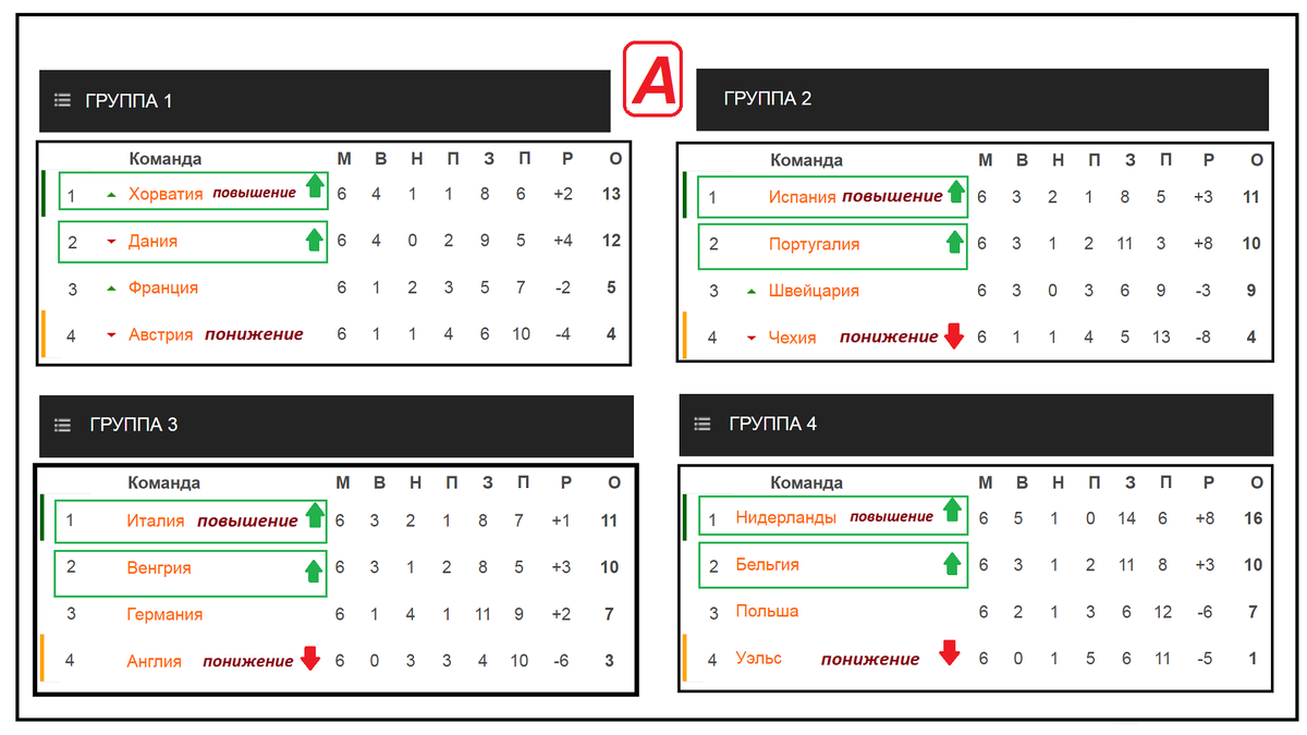 УЕФА не перестаёт нас удивлять. Лига Наций будет расширена за счет новых раундов. Интересно? Давайте по порядку: В Лиге Наций дивизионы А, В, С будут иметь по 16 команд, разделенных на четыре группы по четыре команды. В самом слабом дивизионе D примут участие 7 сборных, разбросанных на две группы. Мы знает, что лучшие сборные каждого дивизиона повышаются в более высший, а худшие команды понижаются или играют стыки за понижение. 1-ое нововведение. Со следующего розыгрыша Лиги Наций будет добавлен четвертьфинал. По новым правилам в финал четырех попадут не только победители групп, но обладатели вторых мест каждой группы элитного дивизиона А. Разберём пример на основе прошлого сезона. В финал прошлого сезона пробились 4 победителя групп (Хорватия, Испания, Италия, Нидерланды). Теперь в четвертьфинале им придётся сразиться с обладателями вторых мест - условными Данией, Португалией, Венгрией и Бельгией. Команды сыграют между собой по две игры. Победители выйдут в полуфинал. 2-ое нововведени