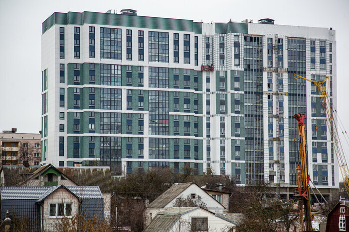 Сейчас 14-этажная новостройка уже хорошо просматривается с проспекта Дзержинского. Дом отличается от других «грушевских» высоток интересным фасадом и вообще, если бы не история с задержкой и уголовным делом, мог бы стать самой передовой новостройкой района.