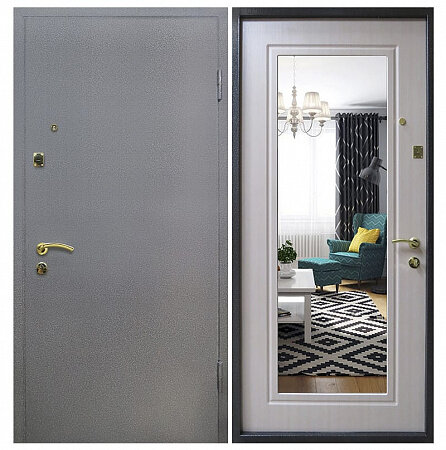 Входные двери, оснащенные зеркалом, все больше набирают популярность. При их установке можно получить как плюсы, так и минусы. Перед тем как заказывать изготовление таких дверей, рекомендуется ознакомиться с их особенностями. Плюсы использования зеркальных дверей Входная дверь с зеркалом, установленным в ней, хорошо смотрится в любом помещении. В некоторых случаях ее даже оформляют в качестве ключевого элемента интерьера. Кроме обычных функций разграничения и защиты, она выполняет и такие: В небольших по размеру прихожих очень выгодно использовать именно зеркальные двери. Не всегда в них есть достаточно места для того, чтобы развесить зеркала. Дверное полотно имеет подходящие размеры, может быть оформлено как стильная дизайнерская находка. При оформлении небольших по размеру помещений дизайнеры нередко пользуются таким приемом, чтобы визуально расширить пространство. Зеркальная вставка также способна сделать дверное полотно менее массивным внешне. Особенности изготовления Зеркальные в