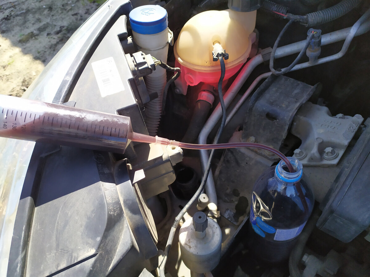 4. Заменил жидкость ГУРа — давно в багажнике болтался литр Total Fluid DA 213756. То что откач
