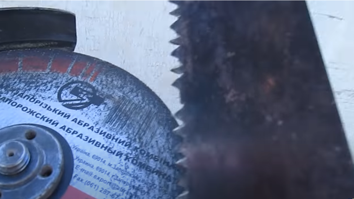 Этим чудо-прибором и шлифуют, и пилят. А сейчас в интернете можно найти сведения и о том, как угловой шлифовальной машинкой (в народе называемой “болгаркой” или “лагундой”) можно еще возвращать остроту инструментам. Там про ножи показано и про резцы от разных агрегатов… Болгаркой можно пилу затачивать? Но именно я расскажу о том, как можно с помощью названного прибора повысить функциональность ножовки! Стоит знать - займет это сравнительно мало времени. Кстати, в конце обзора будет представлен итог заточки пилы. Результат удивительный. Вы сами в этом сможете убедиться. Почему придется работать в 4 прохода Применяется болгарка с самым обычным абразивным кругом по металлу. Не надо искать что-то особенное. Затачивал в 4 прохода. Думал в 2 прохода получится, но нет… Придется потерпеть подольше. Видите, когда круг ставлю на зубчик пилы (смотрите фото ниже), то только одну плоскость зуба болгарка цепляет. А две уже не удается захватить. Приступаем к работе! Значит,... поняли: каждый проход м