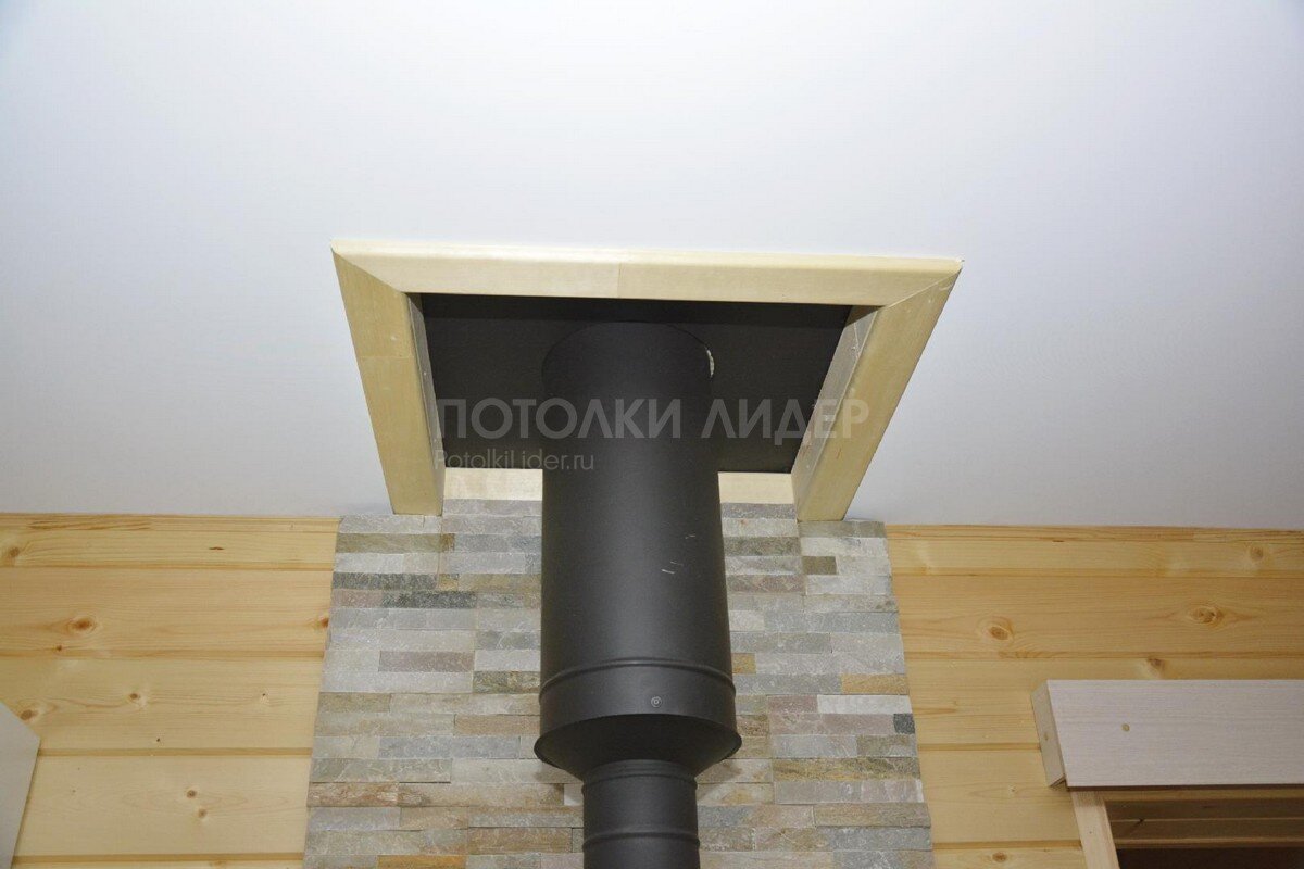 Нет никаких проблем поставить натяжной потолок в помещении с печкой, главное правильно обойти трубу дымохода потолком. Устанавливать в помещение с печкой можно и тканевые и ПВХ натяжные потолки? В помещениях с печкой можно использовать оба вида натяжных потолков, т.е. и ПВХ и тканевые подойдут. Главное, чтобы жар печки не повредил натяжным потолкам. Для этого, поверхность ПВХ натяжных потолков не должна нагреваться свыше 60 градусов по цельсию. 60-90 градусов по цельсию, это температура, при которой, в зависимости от марки и линейки ПВХ натяжные потолки приобретают эластичность. Именно на столько их нагревают тепловой пушкой при установке. После остывания, они скукоживаются и натягиваются на профиль, как на барабан. Тканевые натяжные потолки пушкой не греют, но и у них есть температура, до которой они сохраняют свои эксплуатационные характеристики, она колеблется между 70-90 градусов по цельсию выше ноля. Как обеспечить не превышение нагрева натяжного потолка в месте