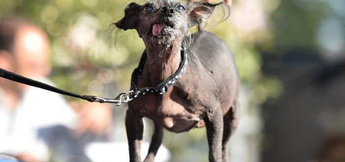 Китайская хохлатая собака — это, пожалуй, рекордсмен. С 2008 по 2018 год они сами или их метисы 5 раз становились победителями в номинации на звание самой некрасивой собаки в мире. Многие сравнивают этих питомцев с гиенами. Шерсть у китайских хохлатых практически отсутствует, сохранены лишь отдельные участки на голове, лапах и хвосте. Пышная грива и огромные уши придают питомцам забавный вид. Хоть они и обладают необычной внешностью, назвать ухоженных китайских хохлатых собак уродливыми язык не поворачивается. Однако при отсутствии внимания, ошибках разведения и травмах они действительно могут выглядеть пугающе.