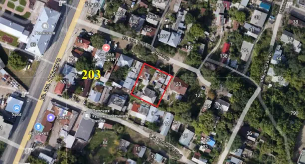 Согласно «Раскладочной ведомости налога с городского недвижимого имущества на 1885г.» (ГАСОФ4.1д.634 ) третье дворовое место от ул. Александровской (Горького) принадлежало ещё с 1867г. кузнецу Дмитрию Ивановичу Папаеву.