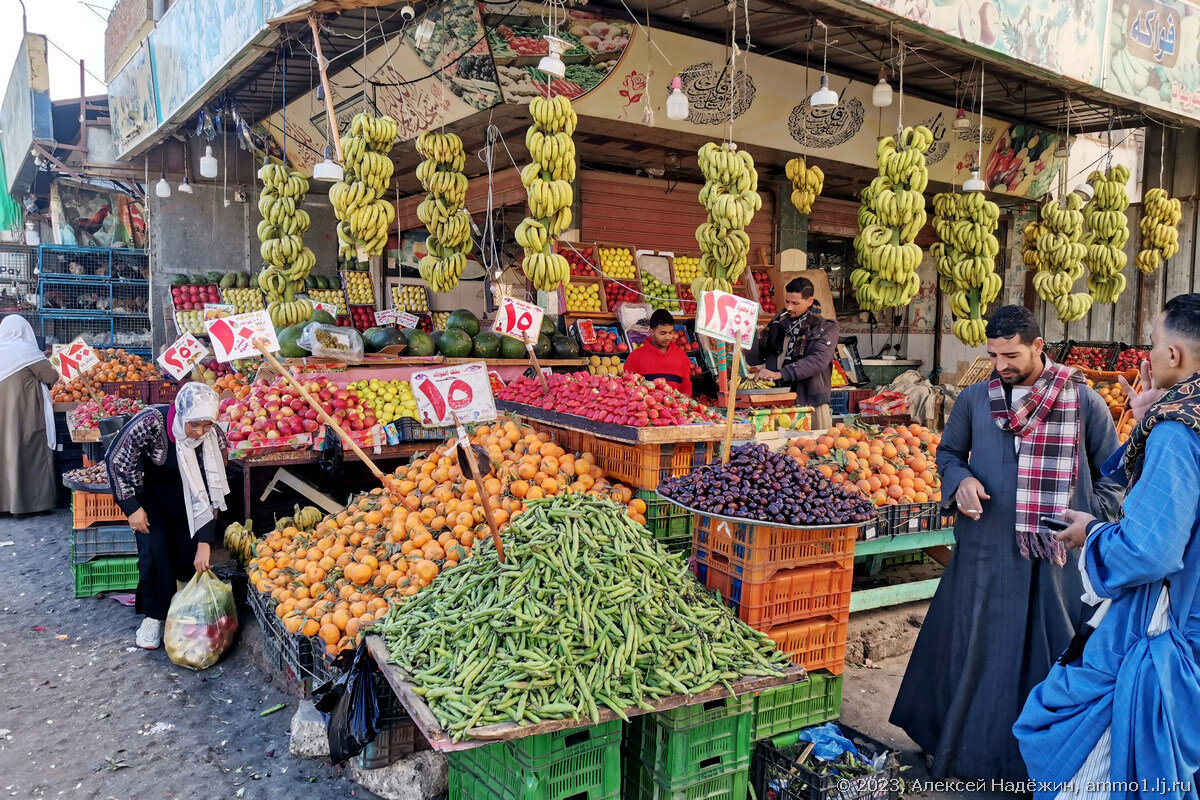 Рынок в самом центре старого центра египетской Хургады (этот район называется Дахар) производит на европейцев неизгладимое впечатление. Рынок состоит из нескольких строений и двора между ними. Самый "дикий" вид внутри - грязищу на земляном "полу" дополняет сетчатая крыша со свисающими тряпками. Впрочем, попав туда, быстро привыкаешь, и обстановка уже не кажется такой жуткой, как показалось вначале. Овощи и фрукты продавцы красиво раскладывают огромными горками. Почти везде есть ценники, но цифры на них арабские. Чтобы вам было проще ориентироваться, вот табличка цифр. Почти все фрукты и овощи, продающиеся на рынке, стоят не более 20 фунтов (~ 45 рублей) за килограмм. Все они выращены в Египте - гораздо более дорогих импортных овощей и фруктов на этом рынке нет. Клубника стоит 15 фунтов (~ 35 рублей) за килограмм. Помидоры 5 фунтов (~ 12 рублей) за килограмм, огурцы, мандарины и бананы 10 фунтов (~ 23 рубля) за килограмм. Такого овоща я раньше не видел. Спросил, что это. Ответили Олэс.