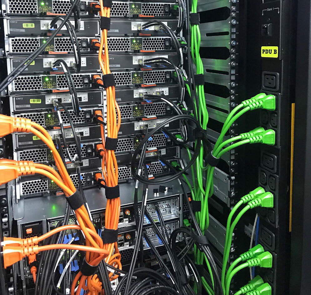 Удобнее всего работать с PDU, когда она крепится вертикально, слева и справа стойки. В этом случае она не занимает полезного пространства. Штатно в стойку можно установить до четырех PDU — два слева и два справа. Чаще всего ставят по одной PDU с каждой стороны. На каждую PDU приходит по одному вводу питания.