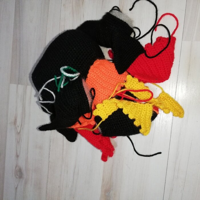 Вязала на подарок другу, захотелось поделиться процессом. За качество фото прошу прощения, кажется, телефон так пытается сказать, что своё он уже отжил. Сначала связала все части, выглядит это пока так: Разложим для наглядности, заодно проверим, все ли части связаны: Всё на месте, приступаем к сборке. Больше фото в процессе не сделала, к сожалению. Сшила все запчасти вместе, вышила детали, вышила рожки. Вот и фото результата: Фото сосочков в конце: Связано крючком 2, 5 из пряжи Пехорка Детская новинка, наполнитель синтепух. Читайте также.