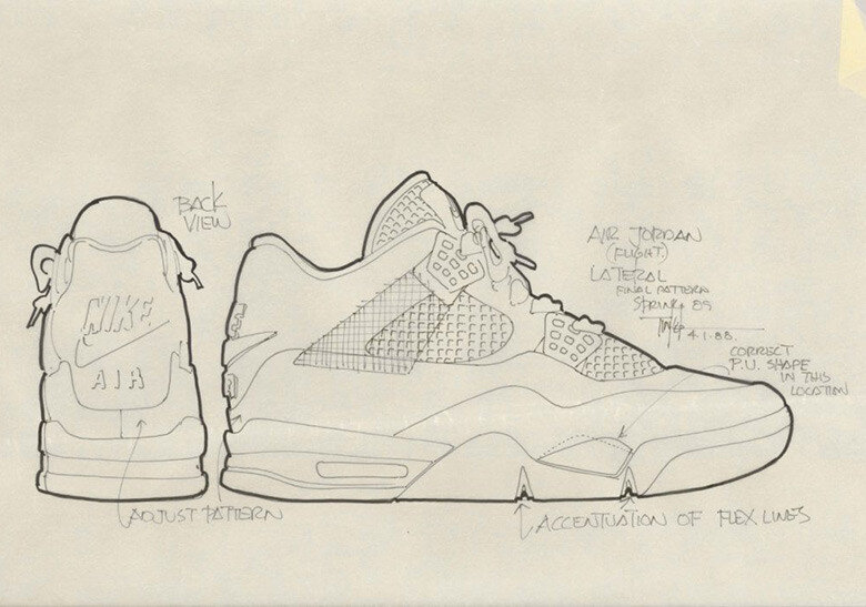 Air Jordan 4 - второй опыт Тинкера Хэтфилда по созданию дизайна кроссовок для Майкла Джордана. Первоначально он думал сделать фирменные боковые пластиковые вставки тканевыми, но потом все изменилось. Первоначальный эскиз из архива рассматривать особенно интересно. Cамый известный момент Джордана и четвертых номерных - легендарный The Shot против Кливленда. За три секунды до конца пятой игры плей-офф «быки» проигрывали 1 очко, и дальше случился легендарный бросок, который стал визитной карточкой Майкла Джордана. Он буквально завис в воздухе. Интересно, что на первой расцветке на пятке были размещены разноцветные яркие элементы, позднее их было решено убрать оттуда и оставить просто черную вставку из пены. Изначально расцветка 'Bred' имела другое название и оно сильно отличалось от привычного нам. На тот момент Nike дал название паре красивым словосочетанием 'Dark Cement'. Всего модель Air Jordan 4 в расцветке 'Bred' была выпущена 5 раз за всю историю своего существования. Скоро она вы