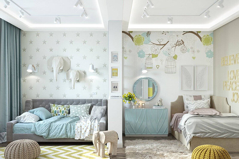 Если дети разного пола, то задачка с декором и размещением мебели в детской превращается в приключение. Постараемся помочь Вам в этом нелегком деле и рассмотрим несколько важных пунктов для создания комфортной атмосферы в детской. Единый стиль и цветовое решение Использование разных цветов и стилей зрительно уменьшит детскую комнату. Даже если она достаточно просторна, все равно возникнет ощущение хаоса. Лучше взять нейтральную палитру и выдержать одну стилистику, тогда комната будет выглядеть единым комфортным и уютным пространством. Зонирование Каждому ребенку необходимы собственные системы хранения вещей, место для отдыха и сна, творчества и обучения. Чтобы дети не спорили и не ругались, лучше подойдите к этой части планирования ответственно и продуманно. Место для обучения можно создать общим, а вот с зоной отдыха и хранения так не получится. Девочки часто любят заниматься творчеством, а для мальчика лучше найти место для активных занятий с турником или шведской стенкой. Необхо