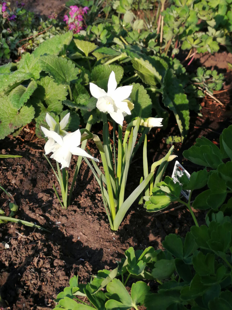 Почему-то я про нее узнала не так давно - собственно, когда рылась в прайсе местного института садоводства, выискивая, что у них можно купить. (Этот прайс оказался с сюрпризом - им сказали сделать на страничку, они и сделали на страничку. А то, что на ту страничку, скажем так, много всего не поместилось - ну что ж, дело житейское) Нашла незнакомое название, пошла гуглить, оказалось, что неплохо бы попробовать. Растения там продаются с окс, и, как ни близко было везти, буквице путешествие не понравилось. Поэтому весь первый сезон я только и делала, что отливала ее водой. Чуть зазеваешься - все, уши висят. Когда я читала, что у людей она растет на солнце, очень удивлялась - моя была посажена в полутени, и при малейшем попадании на нее солнечных лучей начинала капризничать. В общем, первый сезон не впечатлил. Перезимовала она без проблем, и весной показались симпатичные листья. Ладно, завитушки котовника никто не переплюнет, но все равно приятные. Тут я, конечно, нарциссы фотографировала,