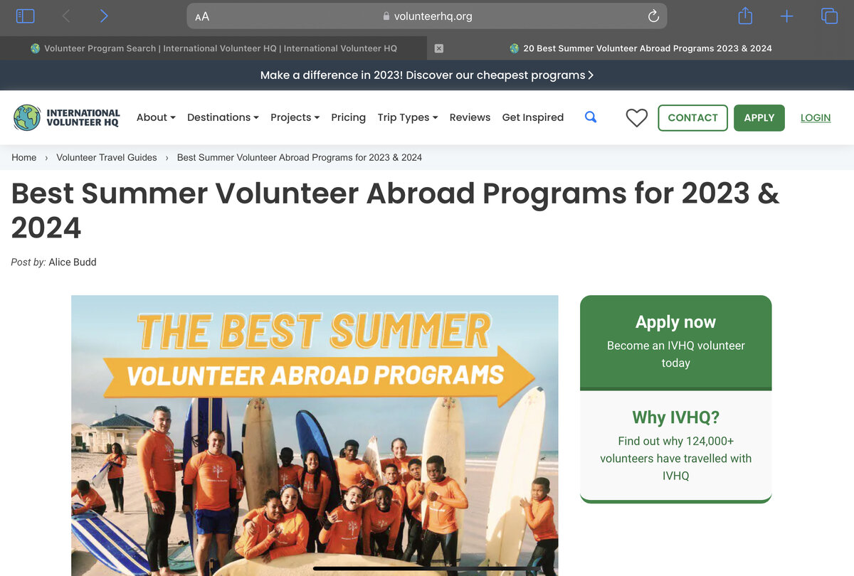 I was searching for summer volunteer programmes online when I found a very useful website. Here is the link: volunteerhq.org ✔️There are a lot of programs, so you can easily find one that suits you. Now let me show you 3️⃣ summer volunteer abroad programs that I like most. ☑️Summer Turtle Conservation Volunteering in Zanzibar ☑️Summer Youth Support Volunteering In Spain ☑️Summer Teaching Volunteering In Tanzania I hope this information was useful for you. Thanks a lot for your attention❤️