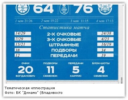 "Динамо" дало бой во Владивостоке московской "Руне", ставящей задачу выиграть Суперлигу в этом году. Победить одного из лидеров регулярного чемпионата пока не удалось, но игра выдалась достаточно боевой, сообщает ИА PrimaMedia. "Динамо" идёт на 6-ом месте в регулярке, одержав 11 побед в 20 матчах. PARI чемпионат России-Суперлига. Регулярный чемпионат. 2 февраля. Владивосток, спорткомплекс "Олимпиец". "Динамо" (Владивосток) — "Руна" (Москва) 64:76 (21:26, 15:22, 11:15, 17:13). "Динамо": Митусов (13оч/1пд/1гп), Соловьев (2оч/3пд/1гп), Грачев (3пд/1пх), Корчагин (5оч/2пд/2гп/2пх), Богданович (20оч/1пд/1гп/1пх), Стуленков (3оч/2пд), Смыгин (2пд/1гп/1пх), Семенюк (10оч/11пд/1гп/1пх/4бш), Пилипчук (1пд), Харрис (11оч/3пд/5гп/1пх) "Руна": Жмако (2оч), Лаваль (15оч/4пд/1гп/1пх), Комиссаров (7оч/1гп/1пх), Дэвис (12оч/6пд/3гп), Сопин (1гп/1пх), Карпачев (1пд/1гп/1бш), Попов (17оч/11пд/4гп/1пх), Савин (13оч/4пд/1гп/3пх), Заряжко (7оч/3пд/3гп), Ключников (3оч/3пд/4гп/2пх) Подопечные Алексея Голяхо