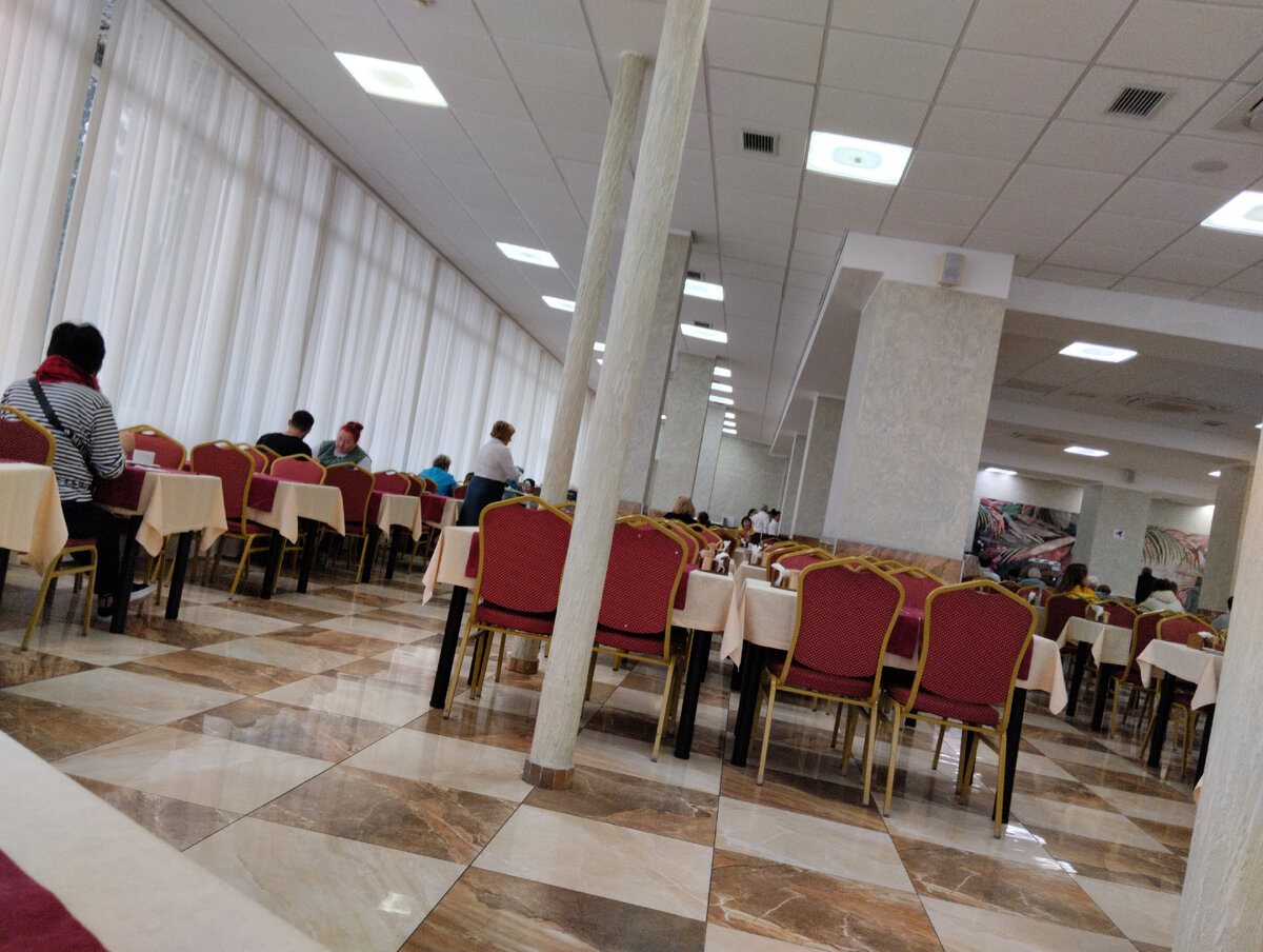 Привет, друзья! Ну вот я и приехала в санаторий. Разместилась в номере и сразу на завтрак! Столовая большая и светлая. Питание-шведский стол. Всего полно, на любой вкус. Сейчас пойду с процедурами определяться. Хорошего вам дня! Ваша Лейла