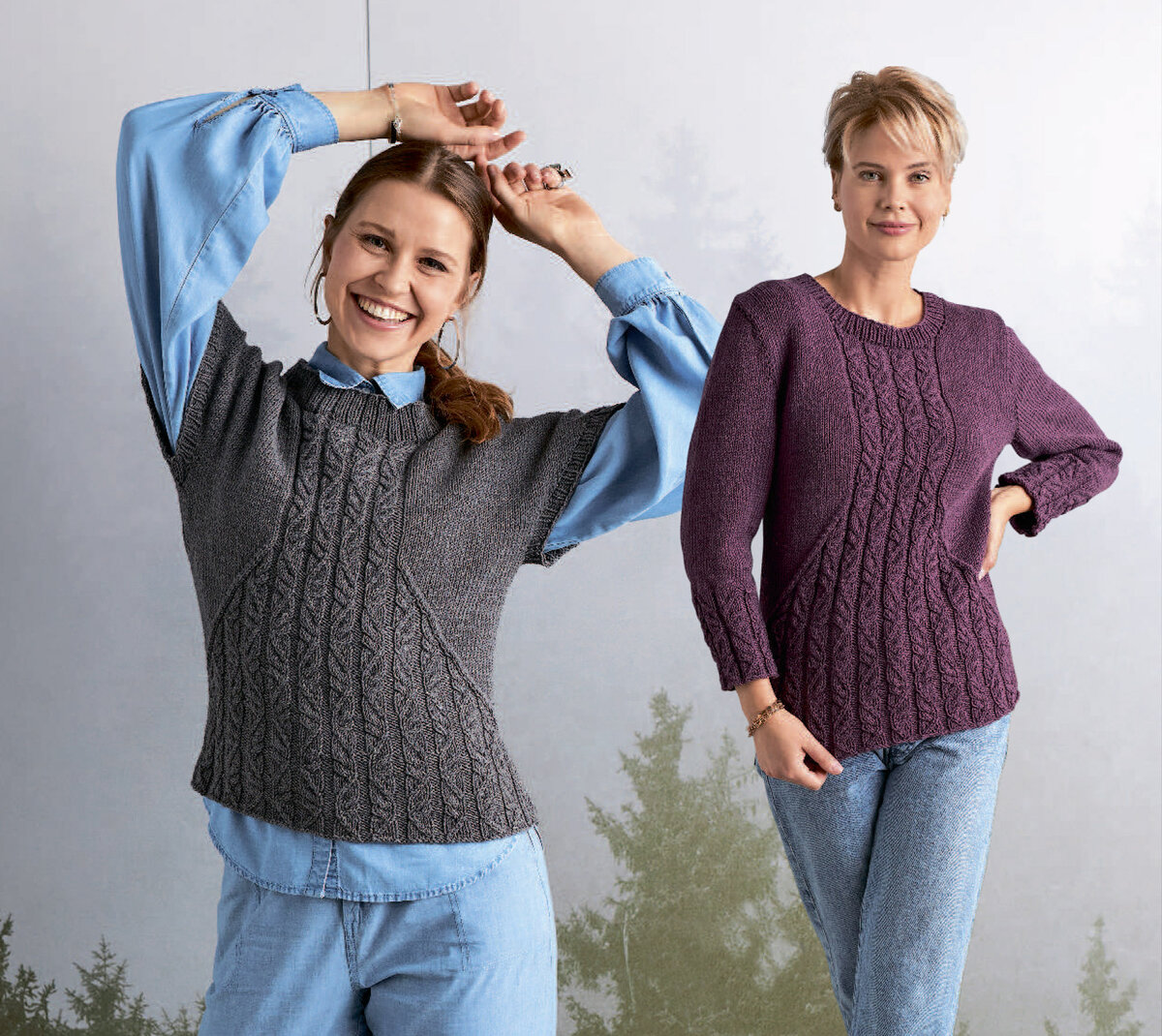 Под таким заголовком частенько печатались в журнале Burda модели, которые можно было сшить для разных случаев и сезонов. Помнится, в юности меня это очень восхищало как пример знаменитой немецкой практичности. Ну так эта самая практичность распространяется не только на шитье, но и на вязание. И сегодня вашему вниманию я предлагаю два совершенно разных изделия, но связанных одним узором и с одинаковыми элементами фасона. Немецкие дизайнеры для обеих моделей предлагают смесовую пряжу с высоким содержанием мериноса и метражом 110 м/ 50 г, но что нам мешает использовать пряжу более легких составов, сделав эти вещи всесезонными. Итак, сегодня на канале Безрукавка и пуловер Favorit Рассмотрим безрукавку для начала. Спущенная пройма, круглый вырез - казалось бы, ничего особенного. Но весь смак в рельефном узоре, который начинается снизу и, плавно сужаясь, доходит до горловины. Как мне кажется, такие линии зрительно вытягивают силуэт, если наклонный рельеф расположить на талии. Ну а в этой