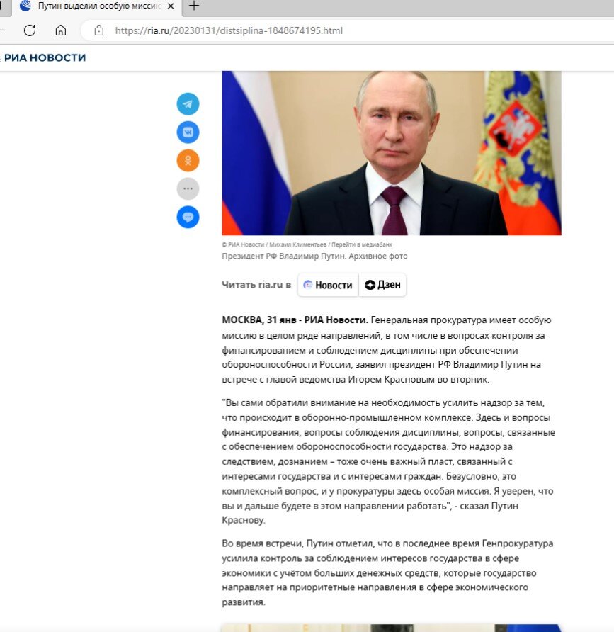 Президент о надзоре за следствием, дознанием, а Генеральная прокуратура (Первый заместитель Генерального прокурора А.В. Разинкин) разрешает открыто воровать у граждан России, например, собственность, формально пока, - интеллектуальную. День назад (31 января) прошла очередная встреча Президента России и Генерального прокурора РФ. Сравнить слова и факты легко. Теперь о фактах. Схему безнаказанного воровства разработал Следственный комитет России, при этом ссылаясь на Верховный Суд. Конкретным автором является Следователь по особо важным делам СУ СК РФ по Северо-Восточному административному округа г. Москвы полковник юстиции А.П. Татаркин. Со стороны его руководства получено одобрение, как и со стороны Генеральной прокуратуры (письмо Первого заместителя Генерального прокурора А.В. Разинкин от 21.06. 2022 № 15-3-1629-2021), она одобрила эту схему воровства собственности у граждан России. Схема простая, хотя Генеральная прокуратура считает ее, видимо, пока засекреченной от граждан Росси