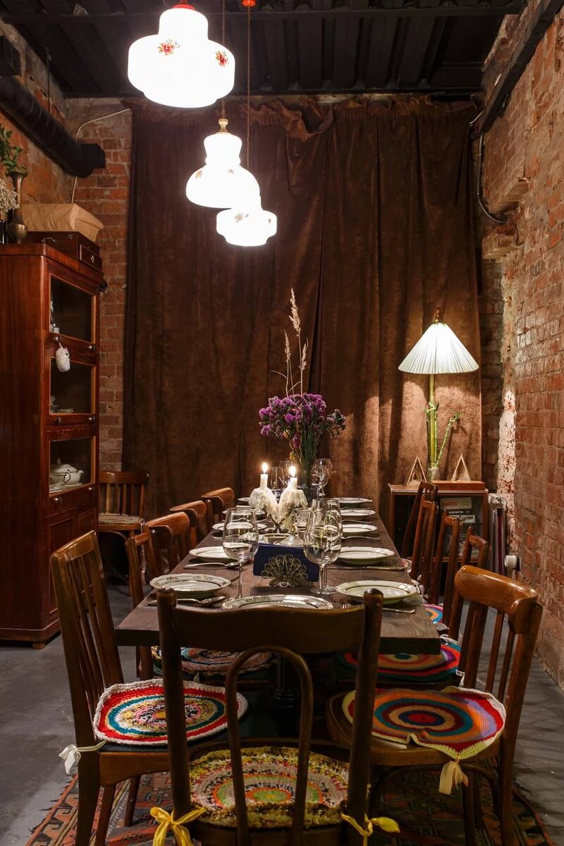По настоящему камерное место всего с одним столом. Почти все отзываются о нем, как о заведении, где чувствуешь себя на кухне у друзей... Сейчас на Большой Грузинской стало куда веселее, чем раньше, много чего открылось, но эта узкая дверь, занавешенная плотной шторой точно удивит. Она ведёт в 25 квадратных метров кулуарности - бар Винага (25 это включая все подсобные помещения). В зале всего только один общий стол на 12 человек. Теперь шок контент: это помещение - бывший подъезд дома, переехавшего в другое место при реконструкции. Пробовать тут стоит домашние пельмени, вареники и брускетты. Кстати, за приготовлением еды гости наблюдают в режиме реального времени, попутно разговаривая с поваром и другими гостями. Ни у кого из владельцев раньше не было опыта работы на кухне ресторана, поэтому еда крайне простая. Посетители хвалят классический греческий салат, который удобно делить на несколько человек, брускетты со страчателлой и хамоном, паштет, тако. Отлична подборка вина и кокт