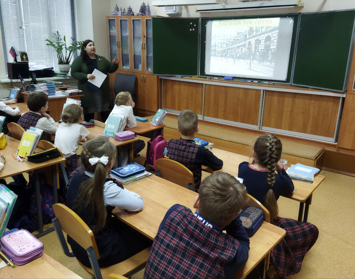 Сотрудник Пензенской Областной библиотеки для детей и юношества рассказала третьеклассникам о страшном периоде преследования и уничтожения невинных людей фашистами, о «хрустальной ночи», о создании нацистами на захваченных территориях гетто и о страшной деятельности «лагерей смерти».