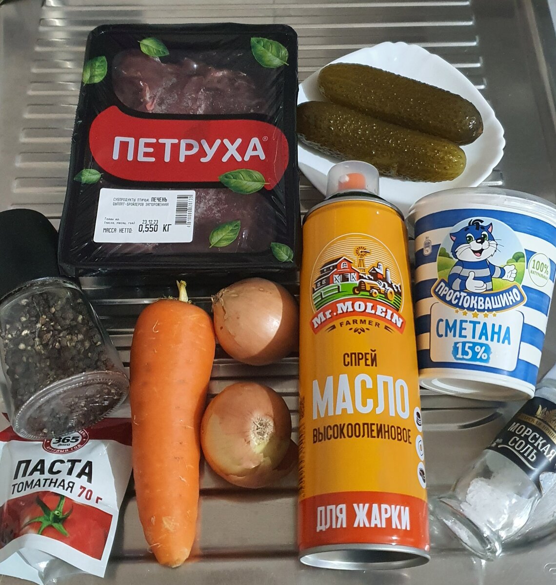 В магазинах сто граммовая баночка паштета давно бьет по кошельку своей неоправданно высокой ценой. Да и состав такого продукта оставляет желать лучшего. Предлагаю приготовить идеальный домашний паштет. Нежная консистенция - отлично намазывается на хлеб, натуральные ингредиенты и возможность длительного хранения не оставит равнодушными никого. Ингредиенты: - куриная печень 500 грамм - лук 100 грамм - морковь 100 грамм - томатная паста 1 столовая ложка - сметана 150 грамм - масло растительное 2 столовых ложки - огурцы соленые или маринованные 150 грамм - соль и черный молотый перец по вкусу Печень очищаем от пленок, жира и всего лишнего. Нарезаем небольшими кусочками. Лук моем и режем мелким кубиком. Морковь помыть, очистить и натереть на крупной терке. Обжариваем лук в растительном масле до золотистого цвета. К луку добавляем морковь и обжариваем овощи еще около 5 минут. К овощам добавляем печень и обжариваем при постоянном помешивая 5 минут. Через 5 минут, убавляем м