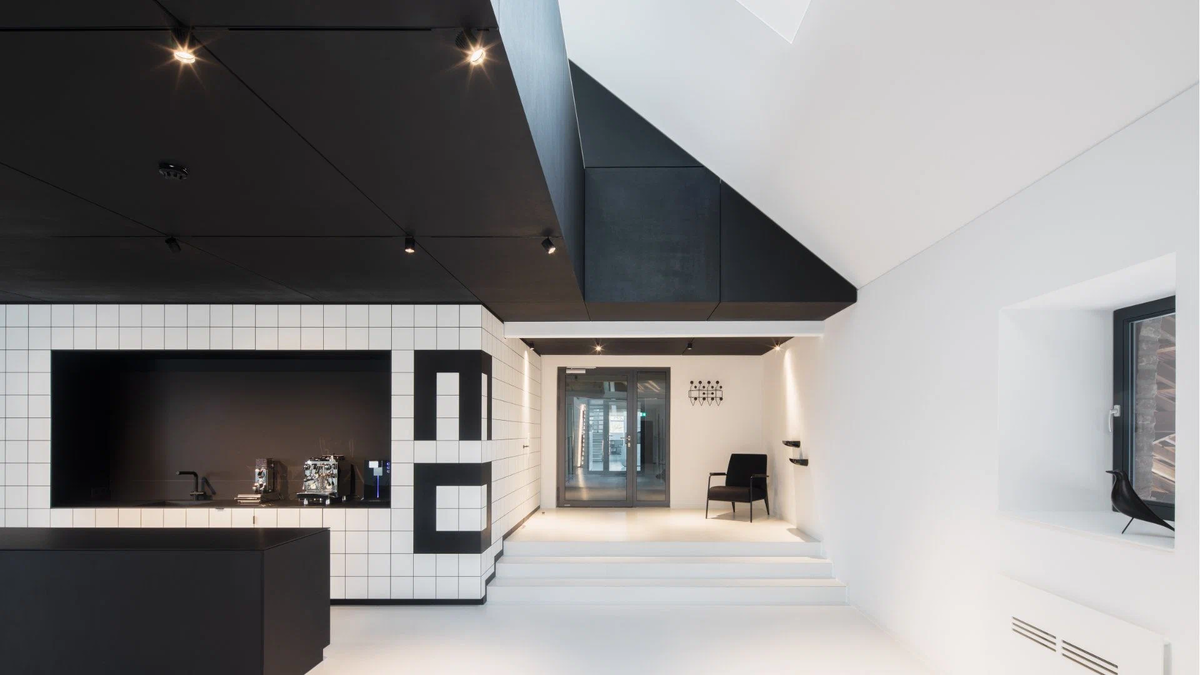 Двух цветов уже достаточно для стильного интерьера Любой расширяющейся компании нужно подкрепить развитие новыми площадями для новых кадров. В случае необходимости в новом современном офисе, не обязательно бежать за арендой дорогих площадок. Можно создать стильную, функциональную и удобную рабочую зону даже из старого склада. В данном примере автоматизации мы рассмотрим здание бывшего склада, переоборудованное под современный офис. Конференц-зал, рабочие места, ворк-спейс и зона отдыха. Часть помещений располагались под крышей и соединялись широким стеклянным проходом. Полностью закрытые помещения располагаются на торцах здания и сочетаются с основным переходами. О проекте Рабочая среда в рамках этого проекта умный офис KNX создавалась в рамках склада 330 квадратных метров. Также, была функциональная задача: воплотить стилистику интерьера и всех устройств в чёрном и белом цветах. Облицовка стен и потолка выполнена промасленной черной плиткой МДФ в сочетании с белыми гипсокартономи ст
