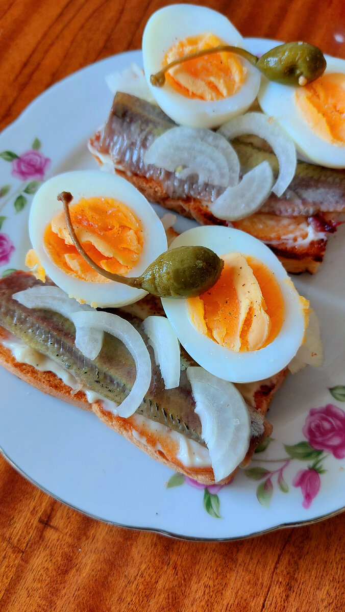 Простейший бутерброд что не мешает ему быть вкусным) Есть главное правило при работе с рыбой и морепродуктами. Это правило и для бутербродов и для салатов. Все продукты должны быть одинаковой, комнатной температуры. Это позволит избежать неприятностей. Например, в данном бутерброды все составляющие одной температуры - комнатной. Важно поймать этот момент, когда всё свежее, только обжаренное, только сваренное, только разделанное, но уже той температуры, когда можно всё соединить. Яйца сварить и остудить. Сельдь иваси ( среднего посола) разделать на филе. Хлеб слегка обжарить на небольшом количестве масла, подсушить. Лук нашинковать полукольцами. Собрать бутерброд- На хлеб совсем немного домашнего майонеза Провансаль. Затем выложить филе иваси, яйцо, лук. Можно добавить соль, зелень, по желанию.