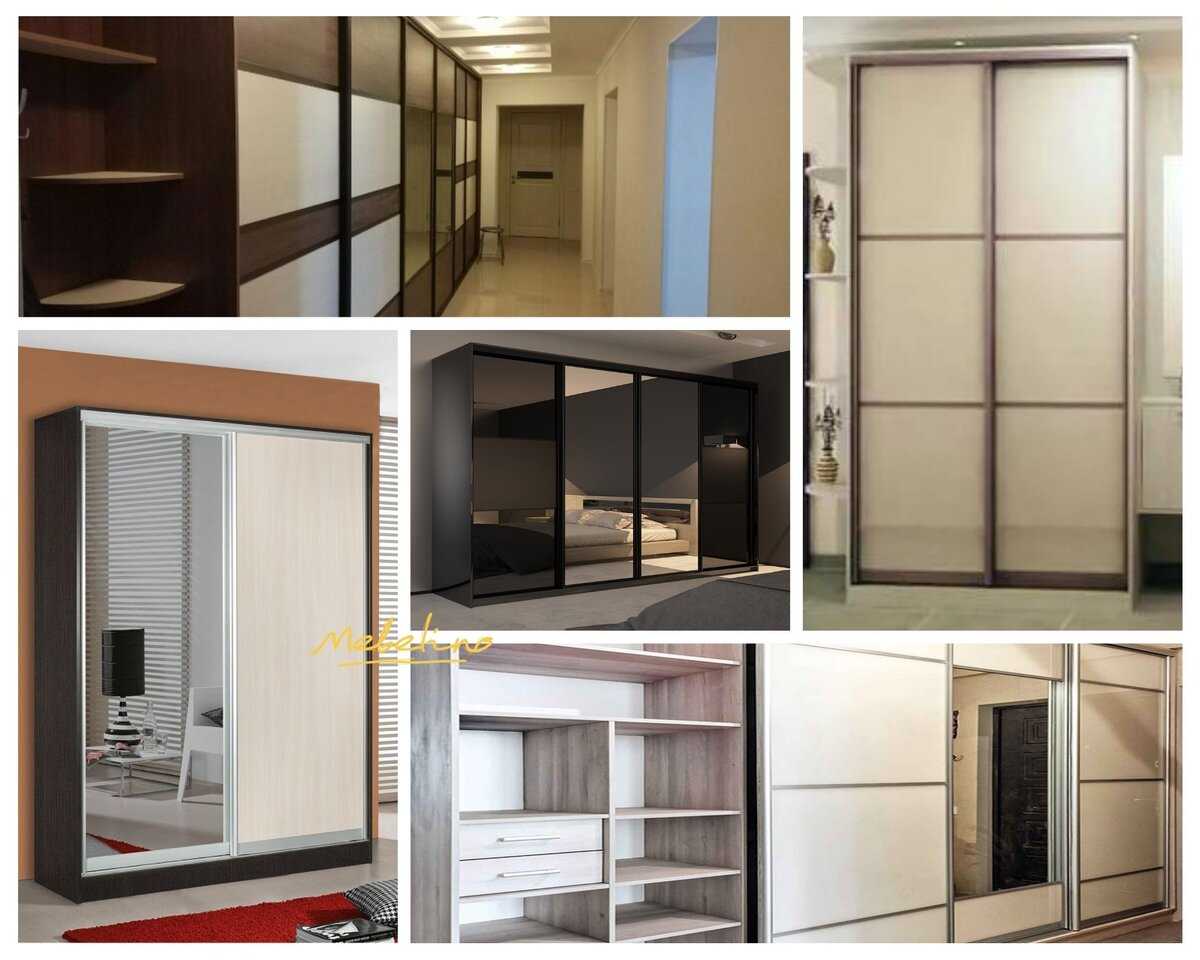 Сколько можно заказать дверей для шкафа-купе? Ответ – от одной до сколько душе угодно. Но есть несколько нюансов, которые нужно учесть: При расчете количества и ширины дверей для шкафа-купе, не забудьте вычесть ширину профиля створок (примерно 30-80 см). Предлагаем фото шкафов-купе с разным количеством дверей: