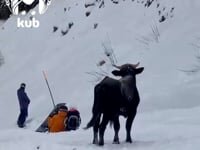 Главный герой самого воодушевляющего видео дня — бык — предположительно, сбежал из Сочинского нацпарка. После знакомства с лыжниками Красной Поляны, небольшого забега на лоне природы и съёмок животного нашли работники горнолыжки. Его оставили наедине с собой, в загоне. Весь курорт ждёт спасателей, чтобы вернуть быка домой. skiпнули Обложка @ Скриншот видео